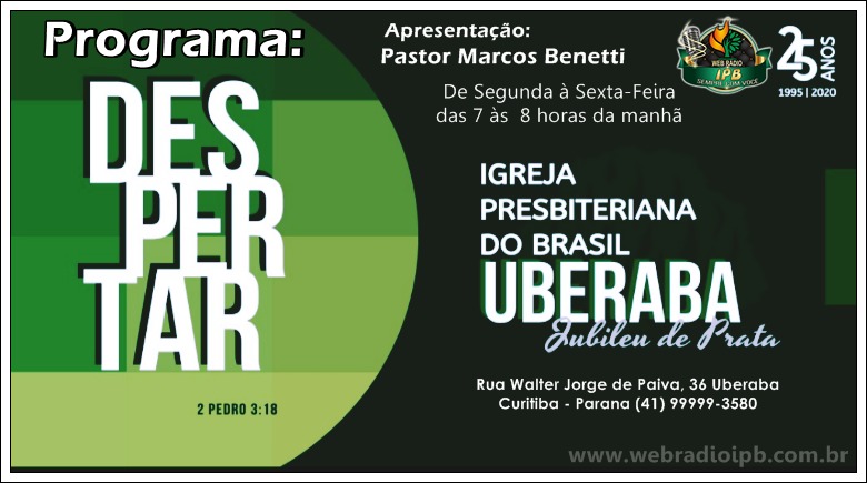 A Web Rádio IPB é uma radio focada em musicas evangélicas, com intervalos de devocionais, levanto até o ouvinte as informações sobre temas reformados e bíblicos. Comunicação online que você curti todos os dias.